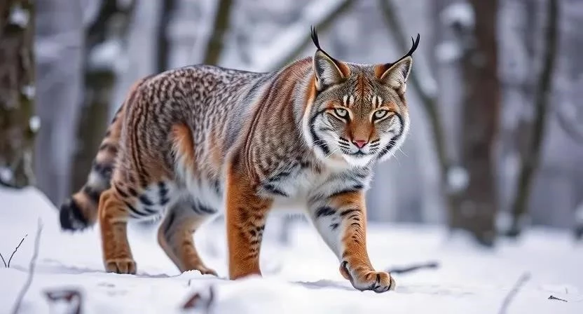 У рыси хорошо развито зрение и слух, что помогает ей охотиться в условиях низкой освещенности. Ее лапы широкие, с втяжными когтями, что обеспечивает устойчивость на снегу и позволяет бесшумно подкрадываться к добыче.
