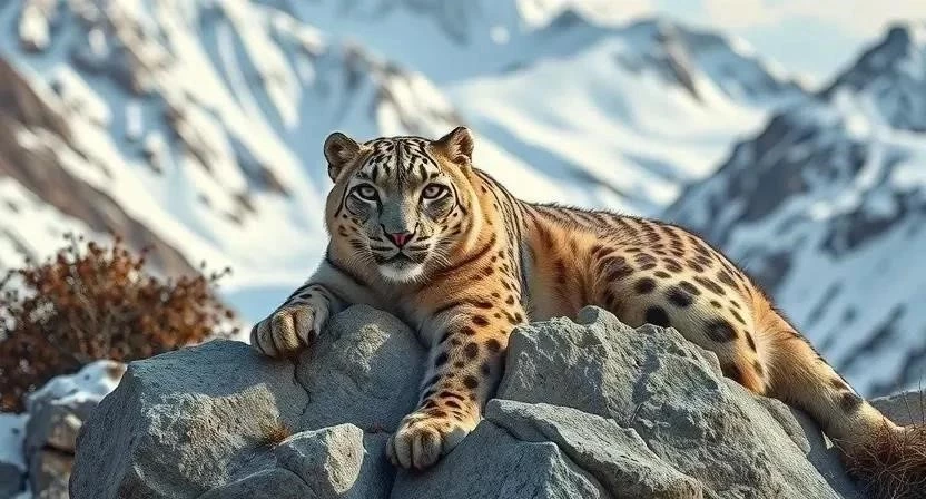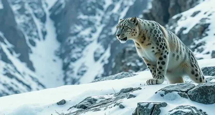 Снежный барс обладает уникальными адаптациями к жизни в горах. Его густая шерсть защищает от холода, большие лапы помогают передвигаться по снегу, а мощные челюсти позволяют убивать крупную добычу. Ирбис – отличный прыгун и альпинист. Он может совершать прыжки на расстояние до 15 метров и легко преодолевать крутые скалы. Снежный барс – символ дикой природы и величия гор.