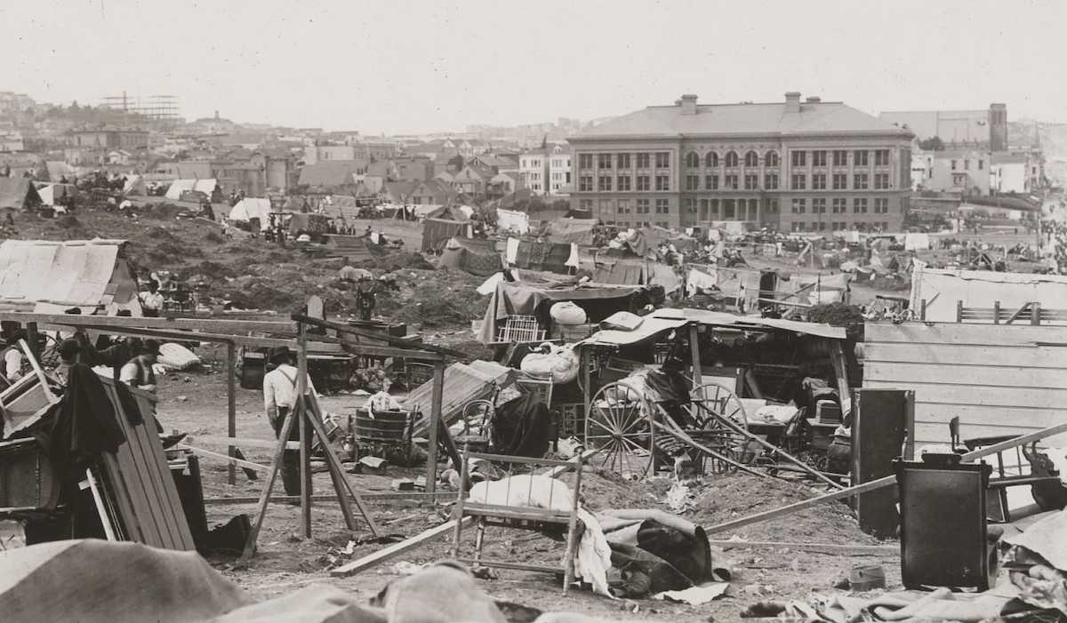 После землетрясения и пожара от половины до трёх четвертей всего населения города — а в Сан-Франциско тогда постоянно проживали около 400 тыс. человек — остались без крова. Около 80% всех зданий не пережили природный катаклизм — некоторые покосились, некоторые просто рухнули. Горожане, которым некуда было податься, устанавливали в парках палатки.