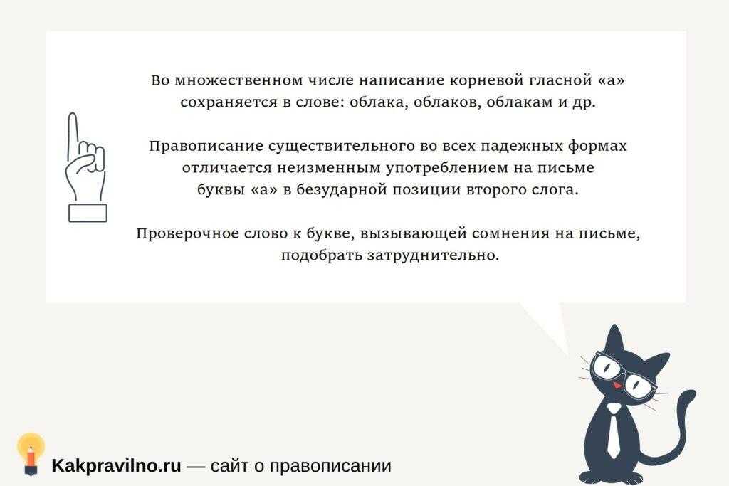 Проверочное слово подобрать к слову «облако» не получится, оно отсутствует в русском языке.