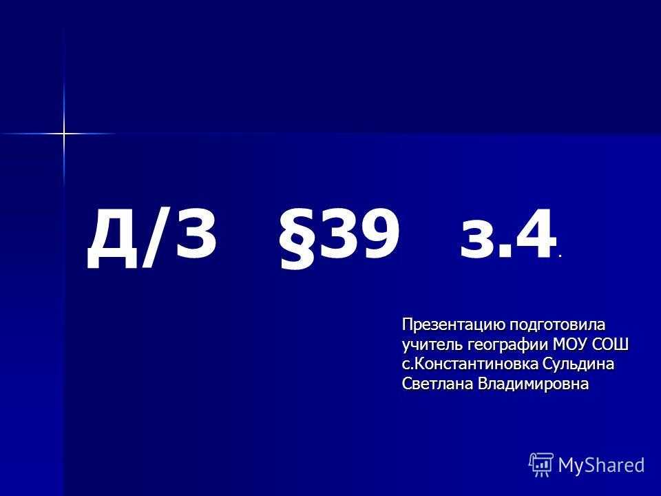 Д/З §39 з.4. Презентацию подготовила учитель географии МОУ СОШ с.Константиновка Сульдина Светлана Владимировна