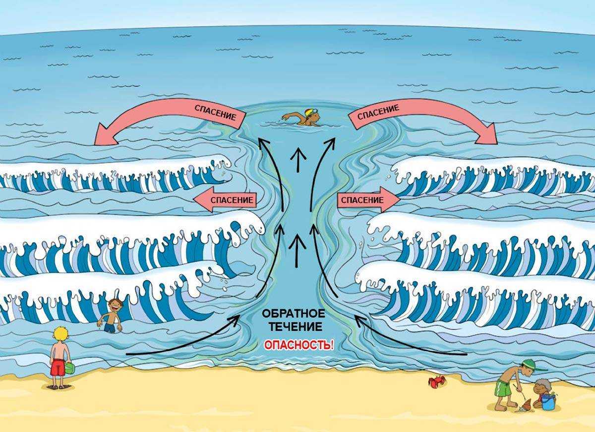 Так называют разновидность морского течения. Это движение прибрежных вод. Образуется, когда масса воды сначала двигается к берегу, затем тянется обратно. Именно в момент оттока жидкости, возникает обратное течение.