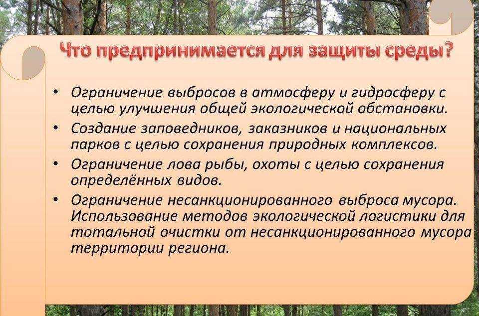 Охрана и восстановление природных ресурсов невозможны без локального и глобального экологического мониторинга — измерения и контроля их состояния, расширения и увеличения числа заповедных зон, уникальных природных комплексов, восстановления лесов, эффективной, максимально глубокой переработки уже добытых полезных ископаемых, развития безотходного производства.