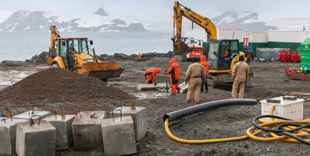 Полярный шелковый путь. Китайские рабочие проводят водоотвод талой воды в рамках открытия станции Comandante Ferraz в Антарктиде