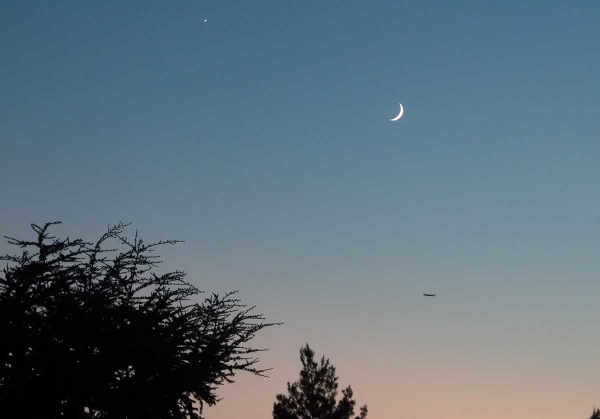 Венера и Луна на вечернем небе. Яркая Венера прекрасно видна даже в ранних сумерках! Фото: Maria Teresa and Raffaello Lena
