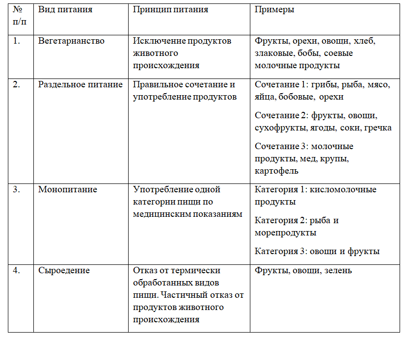 Рассмотрим, какие виды питания наиболее распространены среди людей.