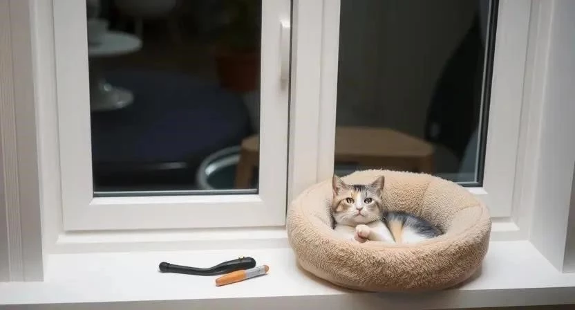 - Создание безопасного места для кошки: Обеспечьте кошку удобным и безопасным местом для отдыха вдали от окон. Это может быть лежанка, домик или когтеточка.