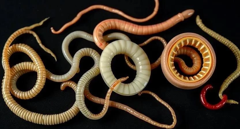 - Ленточные черви: Длинные сегментированные черви, также обитающие в кишечнике.