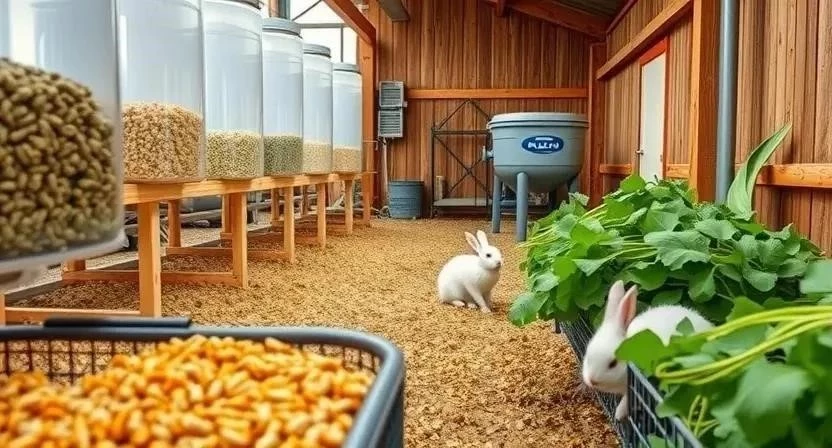 Рацион кроликов должен быть сбалансированным и содержать все необходимые питательные вещества. Основу рациона составляют зерновые корма, корнеплоды, зеленые корма и витаминно-минеральные добавки. В зависимости от возраста и породы кроликам требуется разное количество корма. Важно обеспечить кроликам постоянный доступ к чистой воде. Регулярный уход за кроликами включает в себя уборку клеток, профилактику заболеваний и вакцинацию.
