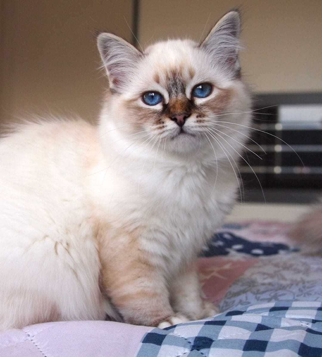 Синие глаза Священной бирмы способны очаровать кого угодно – и человека, и кота, с чем связана красивая легенда.