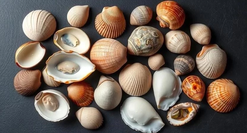 - Двустворчатые ракушки: Состоят из двух створок, соединенных связкой, например, мидии, устрицы и гребешки.