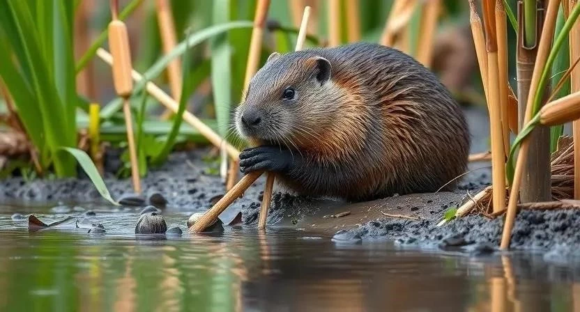 Рацион питания ондатры разнообразен и зависит от времени года. Основу ее рациона составляют водные растения: камыш, рогоз, кувшинки и другие. Ондатра также питается побегами и корнями растений, а в летнее время может поедать насекомых, моллюсков и мелкую рыбу. Зимой, когда водная растительность становится недоступной, ондатра переходит на питание корой и ветками деревьев. Ондатра – запасливое животное, и она делает запасы корма на зиму, складывая их в свои норы.