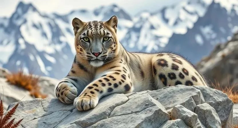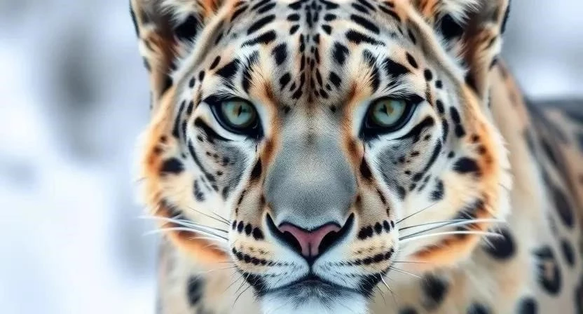 Снежный барс – это мощный и грациозный хищник, идеально приспособленный к жизни в суровых горных условиях. Его густая, дымчато-серая шерсть с темными розетками обеспечивает отличную маскировку на фоне скал и снега. Длинный, пушистый хвост служит ему балансиром при прыжках и помогает согреваться в холодные ночи. Ирбис обладает широкими лапами, что позволяет ему легко передвигаться по снегу, не проваливаясь.