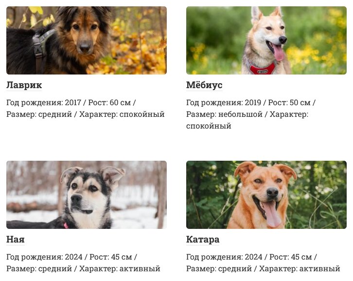 Несколько собак из приютов Москвы в поисках хозяина (скриншот с сайта rospriut.ru):