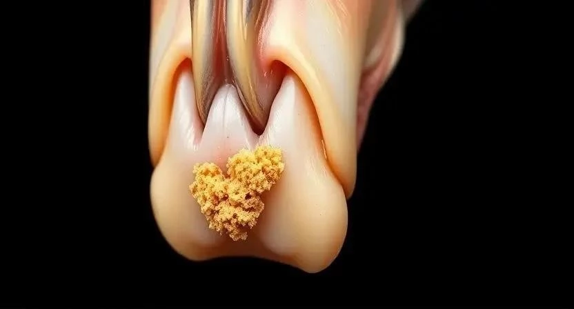 - Зубной камень образуется в результате минерализации зубного налета. Он выглядит как твердые отложения на зубах и может вызывать воспаление десен.