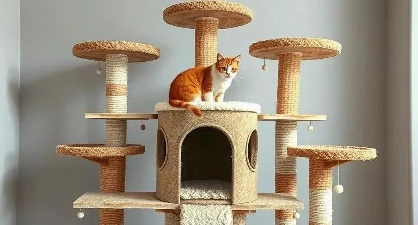 - Комплекс: Многофункциональная конструкция с различными уровнями, лежанками и игрушками.